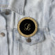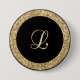 Escrito em ouro monograma L sobre fundo preto com círculo dourado cintilante.