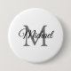 Nome Monograma Personalizável Botão Grande Redondo Modelo Branco Elegante de Tendência Grande.