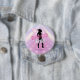 Elegante design personalizado de botão de solteira disco para a equipe da noiva. Em belas cores gradientes que variam de lavanda a pervinca e rosa com uma bola de discoteca funky, silhueta de vaqueira, fonte retrô glamorosa "Disco Darlin'" e fundo de luzes de discoteca. Este design sofisticado e elegante é facilmente adaptado para qualquer jantar especial e/ou evento de dança. Pesquise ID928 para ver outros produtos desta coleção trendy.