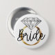 Este botão apresenta as palavras "Noiva" junto com um anel de noivado de diamante branco com uma banda dourada, o acessório perfeito para a festa de solteira!