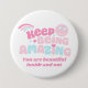 A confiança da criança no estilo pré-disquete é um crachá de botão de pino de reforço. Leituras Continuam Incríveis com um rosto sorridente com olhos estrelados e listras arco-íris num cor-de-rosa pastel e design azul do céu aqua. Personalize com a sua própria escolha extra de redação, lê-se atualmente, você é um belo dentro. Arte gráfica original e design por www.mylittleeden.com no Zazzle.