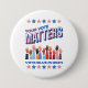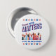 Colorida 2024 O botão de apoio eleitoral para o partido democrático apresenta várias mãos levantadas com o texto "suas questões de voto" e "Vote azul em 2024".
