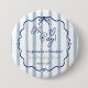 Botão da avó, chá de fraldas "Oh Boy", bonito e moderno, com riscas azuis e brancas empoeiradas, uma moldura ondulada desenhada pela mão e uma fita azul. Um botão redondo simples, mas caprichoso, perfeito para uma futura mãe que quer um chá elegante sem comprometer o elemento doce e divertido da sua celebração alegre.