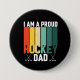 O botão do Pai de Hockey com Orgulho apresenta várias cores verdes, esbranquiçadas, amarelas e alaranjadas em fundo preto com texto branco que diz Eu sou um Pai de Hóquei Orgulhoso!