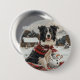 Bóton Redondo 7.62cm Pano Collie Dog Snowman na fronteira de Natal
