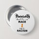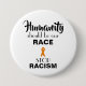 Este botão anti-racismo para ajudar a promover a igualdade tem uma faixa de consciência laranja (que apóia a eliminação da discriminação racial) e o ditado: a humanidade deve ser nossa raça STOP RACISM.