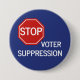 Botão com sinal de parada e texto "Parar a Supressão do Eleitor" em fundo azul escuro.