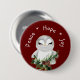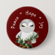 Que ano foi! Aqui está um belo botão de manutenção que resume 2020 e apresenta um pinguim branco, longo e branco, com máscara facial, texto branco "Paz, alegria, esperança" e tochas de vergreens de Natal em fundo vermelho escuro.