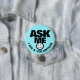 Pergunte-me que sou voluntário, que sorria a ligação do cliente do serviço de atendimento ao cliente ou crachá do botão auxiliar. Informe aos seus clientes ou ao público que você está disponível para ajudar com este brilhante crachá de botões azul, preto e branco. A cor de fundo pode ser alterada se necessário. Projetado por www.mylittleeden.com