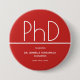 Um botão para celebrar um formando de doutorado com um design vermelho e branco. Este item faz parte de uma coleção de festas de formatura que inclui um convite, anúncio de fotos, guardanapos de papel, cartões de lugar e muito mais. Personalize esses itens, adicione-os ao seu carrinho e celebre essa grande conquista. Botão de Graduação do PhD Holidayday Design | ©Melissa Patton - Designer