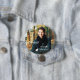 Este pino do botão do formando é mostrado com um exemplo de impressão de foto e texto, personalize edite a foto e o texto e coloque o seu. Tamanho grande mostrado Foto de estoque freepik.com