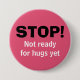 Mensagem simples que diz STOP, NOT READY FOR HUGS AINDA em tipografia branca e preta contra fundo rosa. O texto branco é PERSONALIZÁVEL, portanto você pode criar sua própria mensagem pessoal 'Manter fora'! Uma maneira ideal de apagar o dilema do abraço ou do cotovelo. Disponível em outras cores.