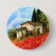 Paisagem da Toscana, beleza colorida, vibrante e expressiva dos campos rurais italianos e da papoila vermelha, bela flora de Verão em verde claro, amarelo, castanho, azul, branco, prados, campo de flores, cinza e oliveiras, antiga casa de fazenda rustica sob o céu azul e nuvens brancas. Pintura acrílica em canvas.