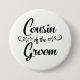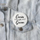 Primo do botão do jantar de ensaio do casamento da tipografia do estilo do vintage do noivo. A cor do fundo é customizável - você pode fazê-la combinar seu tema do casamento.