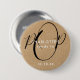Botão de baby shower com texto elegante em preto e branco em um fundo kraft rústico com a inscrição "Rustic kraft chic script ready to pop". Criado por Thisisnotme©