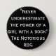 "Nunca subestime o poder de uma garota com um livro." - O notório RBG, o juiz da Suprema Corte, Ruth Bader Ginsburg, citou um botão que pode ser ainda mais personalizado com fonte ou cor e/ou transferido para outro produto.