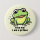 Um adesivo de desenho de sapo verde e bonito com a mensagem "Beije-me! Eu sou um príncipe"