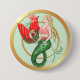 Design de fantasia encantadora com sereia loira segurando uma bonito água. fundo do estilo de deco de arte ornamentado dourada.