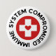 Botão do sistema imunitário comprometido, branco, com um círculo vermelho no meio, com uma cruz branca e um coração vermelho.