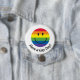 O botão do smiley face do arco-íris que diz "tem um dia alegre"