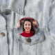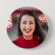 Botão Memorial de Fotografias Personalizado, um design simples e moderno com fonte em relevo de estilo sans-serif, nome personalizado, data e fotografias. Disponível em tamanhos pequenos, médios, grandes e enormes, em formas quadradas e redondas. Sem ordem mínima. Texto vermelho para foto escura. Botão Memorial de Fotografias Personalizadas