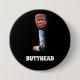 An anti Trump button featuring Donald Trump's head on a cigarette butt.