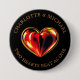 This black pin button badge features a large vibrant love heart with another smaller love heart within, in vibrant reds and yellows. Complemented with fiery red, orange and yellow toned text with "Your Names" and "Two Hearts Beat As One". A great gift for your girlfriend, wife, soul mate or twin flame. Happy valentines day. A.I. was used creating this design. To change the text click on the personalize button.