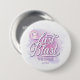 Elegante design personalizado de botão de despedida de solteira disco para a noiva em belas cores gradientes de lavanda ao periwinkle e rosa com uma bola de discoteca funky, fonte retrô glamorosa e luzes de discoteca cintilantes, fundo de aquarela. Este design sofisticado e elegante é facilmente adaptado para qualquer jantar especial e/ou evento de dança. Pesquise ID928 para ver outros produtos desta coleção da moda.