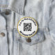 Você pode digitar o URL do seu site para criar seu código QR personalizado. Há duas linhas de texto de exibição em preto que você pode editar para mostrar uma mensagem personalizada. Estes botões elegantes têm texto preto num círculo branco. A borda de ouro falso (e não folha) é uma renderização artística.
