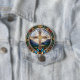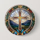 Uma imagem tradicional da Cruz Santa num estilo de vidro manchado por abstrato. É uma bela representação que captura a fé e a inspiração de nosso Jesus. Se você está procurando por um botão que reflita fé e devoção, esta design seria uma escolha adorável!