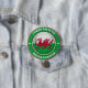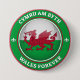 Um design patriótico com uma bandeira 3D galesa arredondada dentro de um anel externo colorido em galês. O texto mais alto é de origem celta e traduz-se como Wales Forever. O texto inferior é o significado inglês do texto superior.