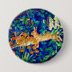 Botão em uma ilustração William Morris de duas lebres correndo por um cenário de floresta selvagem - melhorado digitalmente e colorido