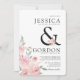 Um conjunto único de convites para o rosa floral, talhados especificamente para o seu futuro casamento. Eles apresentam um símbolo "&" ousado juntando-se aos nomes da noiva e do noivo.