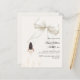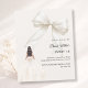 This sophisticated design features a large ivory bow adorned with delicate pearl details, paired with a graceful gown illustration. A soft ivory colored background creates a modern, refined look that feels both luxurious and unforgettable.