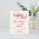 A soft cream colored background, decorated with a pink large bow and a golden cross. Personalize and add a name and details details.