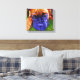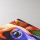 Não é fácil arrancar a sua própria buzina, mas permita-me apontar algumas coisas chave que acredito que tornam todas as minhas pinturas únicas minhas. À primeira vista, a imagem do filhote é reconhecível e ouso dizer fofo, ela puxa você para um olhar mais próximo e você percebe que as cores são arrojadas, roxas e laranja, não fiéis à vida, mas de alguma forma ela funciona. As pinceladas são livres e relaxadas, mas com intenção; no entanto, à medida que você se aproxima o trabalho de pincel torna-se muito apertado e preciso. Olhe para os olhos do filhote e você verá exatamente o que isso significa. Você não vê a íris, mas o que você vê é o reflexo do campo em que ele está deitado. Um pincel solto ao longo da maior parte da peça justaposta contra a sensação realista de seus olhos é o que subconscientemente puxa o espectador para dentro da pintura.