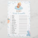 Este adorável jogo de chá de palavras de bebê apresenta um ursinho de pelúcia flutuando em uma nuvem com um roteiro elegante e texto moderno para seus detalhes. O dorso tem ursinho de pelúcia segurando um balão. Fácil de personalizar clicando em "Personalizar". CHAVE DE RESPOSTA: 1. Fralda, 2. Berço, 3. Bovinos, 4. Garrafa, 5. Pacificador, 6. Gravidez, 7. Fórmula 8. Teddy Bear, 9. Alta Presidente, 10. Patrulheira, 11. Baby Monitor, 12. Rattle, 13. Pó De Bebê, 14. Telefone celular, 15. Bomba de Mama, 16. Cobertura, 17. Assento Do Carro, 18. Chorando, 19. Enfermeiro, 20. Creme de fralda