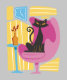 The graphic depicts a black cat sitting in a chair.