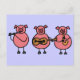 Design de cartão postal de porcos engraçados e bonitos. Um pequeno porco toca flauta, outro toca guitarra, e o terceiro toca saxofone. Também é possível adicionar texto personalizado ao fazer pedidos.