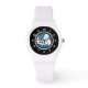 Personalize esse moderno relógio esportivo com um gráfico de voleibol branco e azul ligeiramente amassado no centro e sotaques preto e branco. Basta editar as letras no editor fácil do Zazzle. Muitas outras opções de estilo bezel e banda disponíveis para selecionar entre personalizar ainda mais para torná-lo um presente para qualquer homem, mulher ou criança.