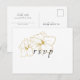 Tchique moderno mínimo. Este cartão postal de resposta RSVP encantador apresenta um conjunto de fontes contemporâneas em preto-e-avião contra um fundo branco nítido e delicado detalhe floral em ouro falso.