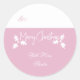 Feliz Natal com Holly Typografia Pink e White Gift Tag Sticker