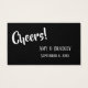 Quer oferecer aos seus hóspedes uma maneira de desfrutar de várias bebidas alcoólicas durante a sua recepção ou festa sem se comprometer com um bar aberto? Estes bilhetes de bebidas de 3 socos podem ser ideais para ti! Em uma fonte ousada, branca e moderna, a mensagem na frente lê "Beba algumas bebidas em nós!". O texto é editável, se você desejar uma mensagem diferente. Girado, à direita e colocado entre linhas finas são as palavras "Resgatar no Bar"; este texto também é editável. Três círculos numerados foram adicionados à direita para que seus convidados possam ter suas cartas perfuradas no bar enquanto são servidos até três bebidas complementares. Abaixo da palavra "Saúde!", o outro lado tem campos de modelo configurados para seus nomes e data. Basta usar campos de modelo para adicionar seus detalhes pessoais e reformular qualquer uma das frases. Todas as camadas foram adicionadas sobre um preto sólido editável; mude esta cor para qualquer coisa que você quiser, para combinar com a paleta de casamento. Projetada por Melody Watson para Paper Muserie.