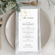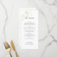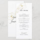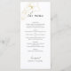 Este menu de casamento chic e na moda apresenta um conjunto contemporâneo de fontes e elementos de script contra um fundo branco, ao lado de delicados contornos florais em ouro falso.