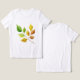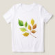 The image shows a watercolor painting of a branch with leaves in the stages of changing colors as they fall.