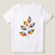 The leaves are illustrated in a soft watercolor style, with color variations that combine shades of blue, green, and orange.