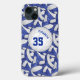 Esta capas de iphone de vôlei apresenta um bando de volichões azuis e brancos organizados em um padrão espelhado superdimensionado — os painéis azuis de vôlei são misturados com um padrão caleidoscópico floral para uma aparência feminina e artística que ainda é esportiva - seu nome e número de camisola são personalizáveis em um vôlei branco - por katz_d_zynes | veja mais equipes de vôlei de meninas colorido presentes na coleção de presentes de vôlei de cores da escola de vôlei de katzdzynes >> https://www.zazzle.com/collections/119253642051968072