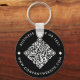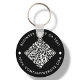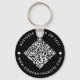 Chaveiro de Código QR personalizável, com um fundo preto. Para gerar um novo código QR no design, adicione o URL do seu site ou identificador de mídia social no recurso " personalizar este modelo".