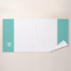 Branco com um monograma de texto tradicional no conjunto de toalhas de banho de borda de cinza verde-aqua e verde-claro.