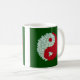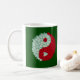 Esta caneca caracteriza o símbolo selvagem de yang do yin dos rosas brancos e das rosas vermelhas no fundo verde escuro. O símbolo de Yin Yang representa o equilíbrio e a harmonia. A rosa vermelha é associada simbolicamente com o amor eterno, o amor romântico, e a paixão. O rosa branco é associado com a unidade, a virtude, e o pureness de uma ligação nova do amor igualmente com amor e relembrança espirituais.